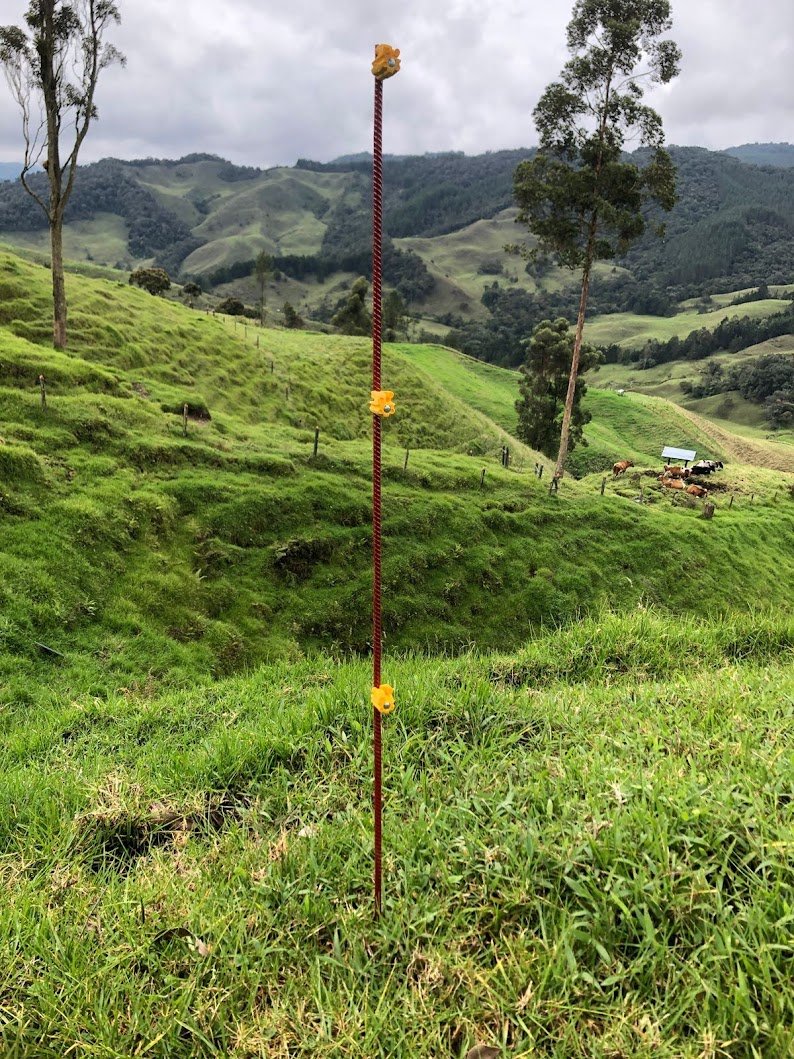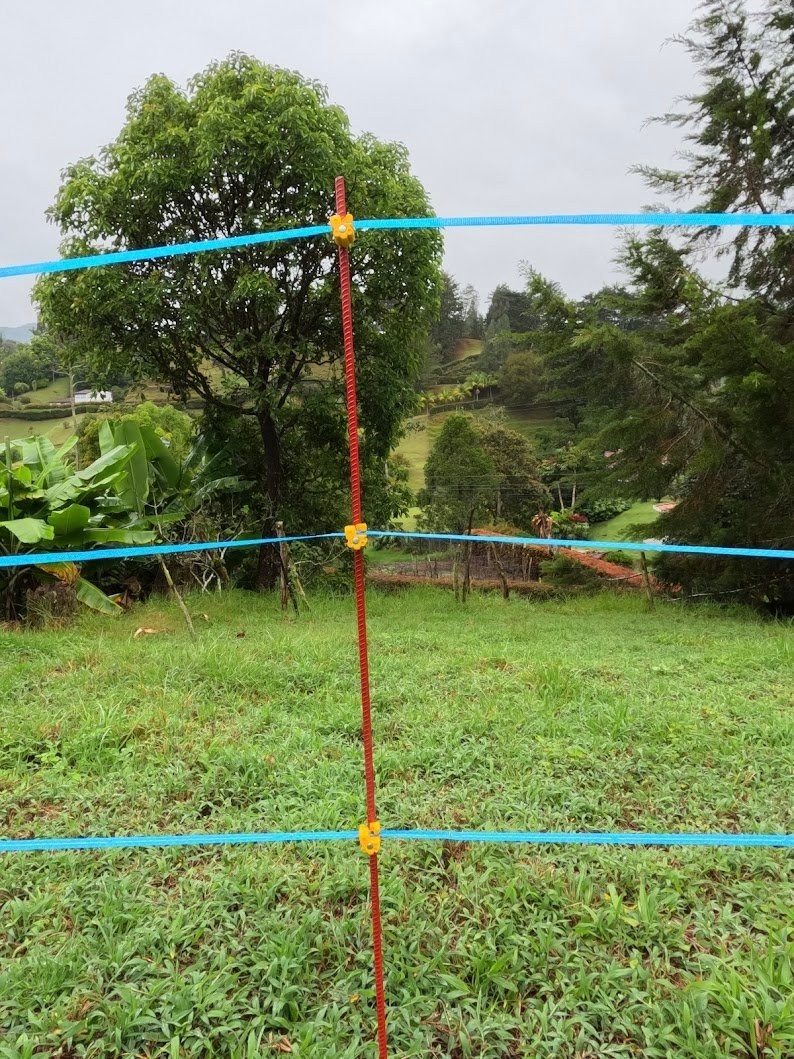 Varilla de hierro de 1.50 m y 3/8, con 3 aisladores incorporados, ideal para cercas móviles y subdivisión de potreros. Resistente, práctica y lista para facilitar el manejo del ganado.