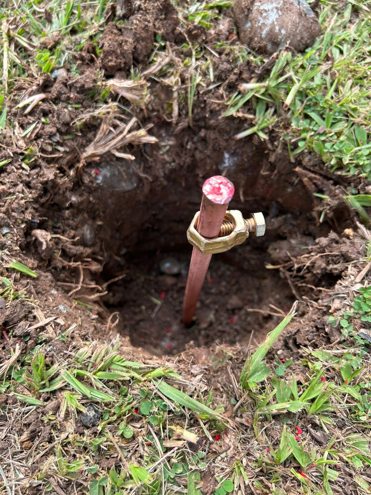 Varilla Copperweld de 1.50 m, recubierta en cobre para alta conductividad, necesaria en la instalación del sistema de polo a tierra del impulsor de cerca eléctrica; incluye conector tipo grapa.